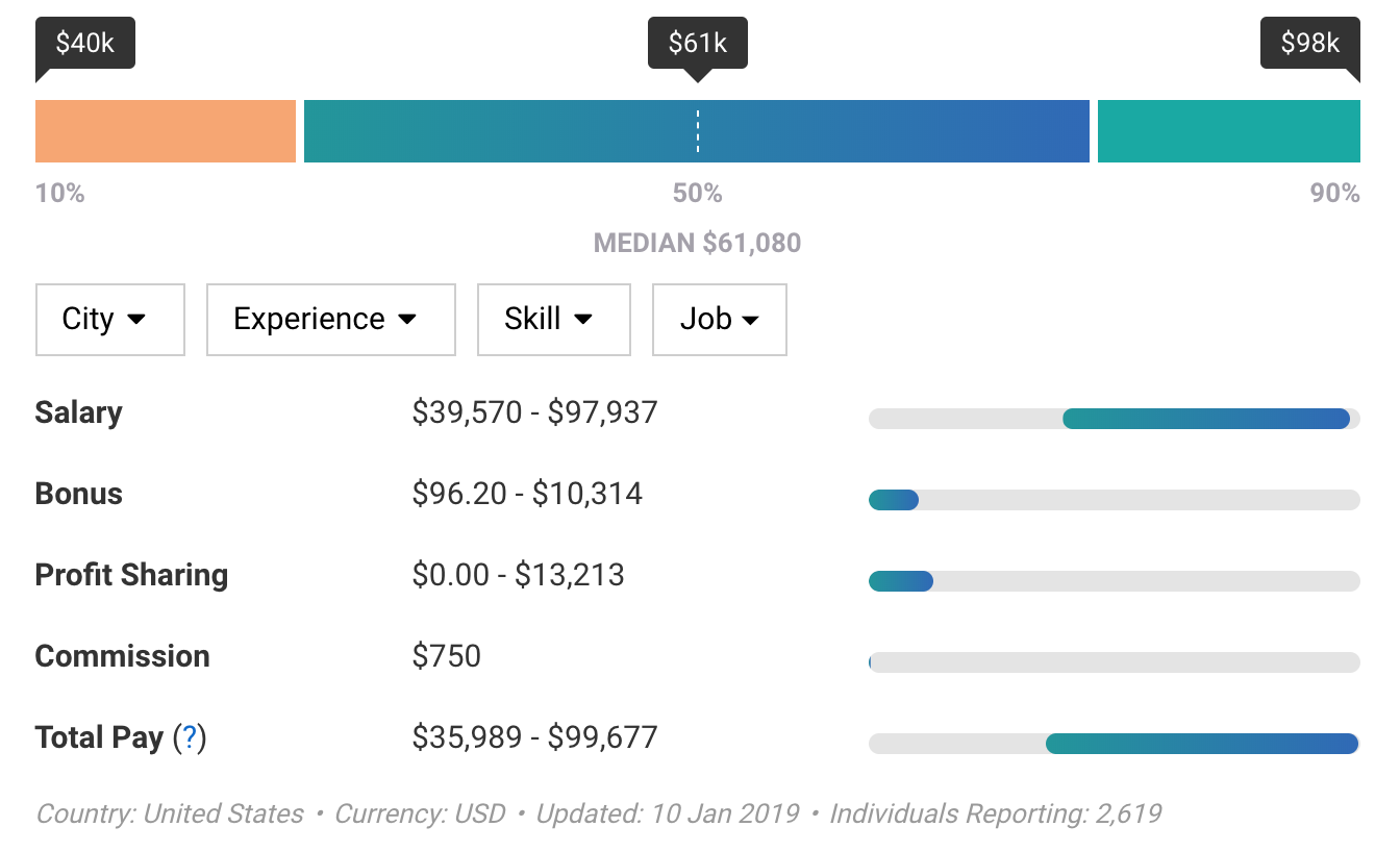 What Iâm interested in is the pay gap between those 10x programmers and everybody else. Letâs take a look at the salary report from PayScale (I took this screenshot from here):